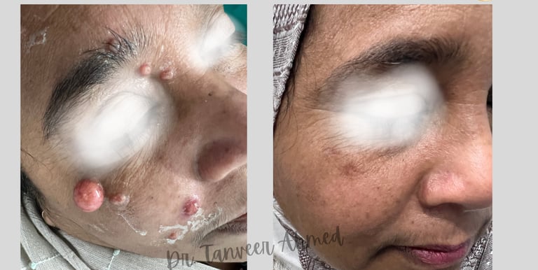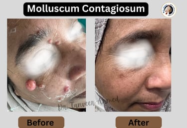 Giant molluscum contagiosum cleared effectively with timely treatment, restoring healthy skin and confidence.