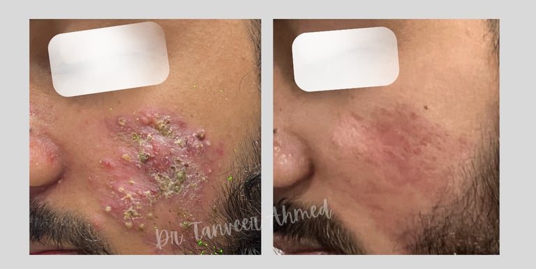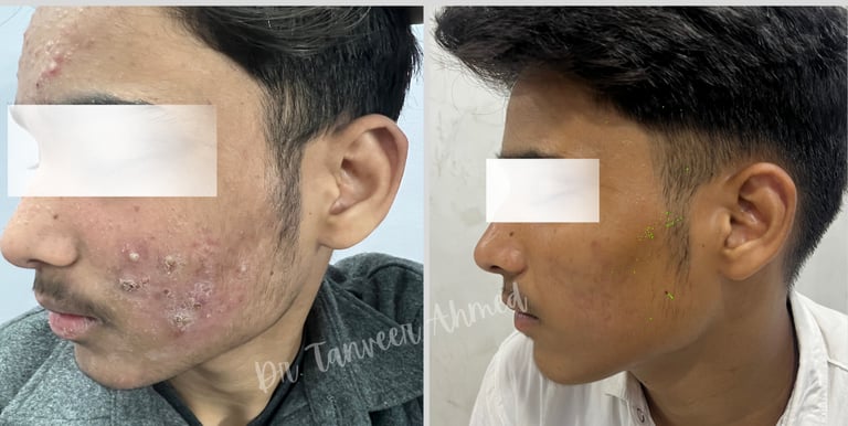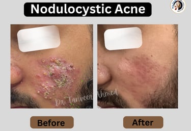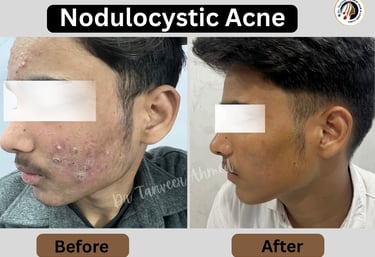Deep, painful acne nodules respond best to timely treatment with Isotretinoin under expert care.